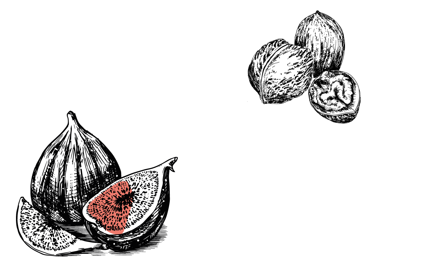 00 wheat flour*, wholemeal flour*, spelled flour*, rye flour*, butter*, fresh pasteurized egg yolks*, figs, nuts*, sugar, sourdough starter*, acacia honey, salt, water, Madagascar bourbon vanilla pods.