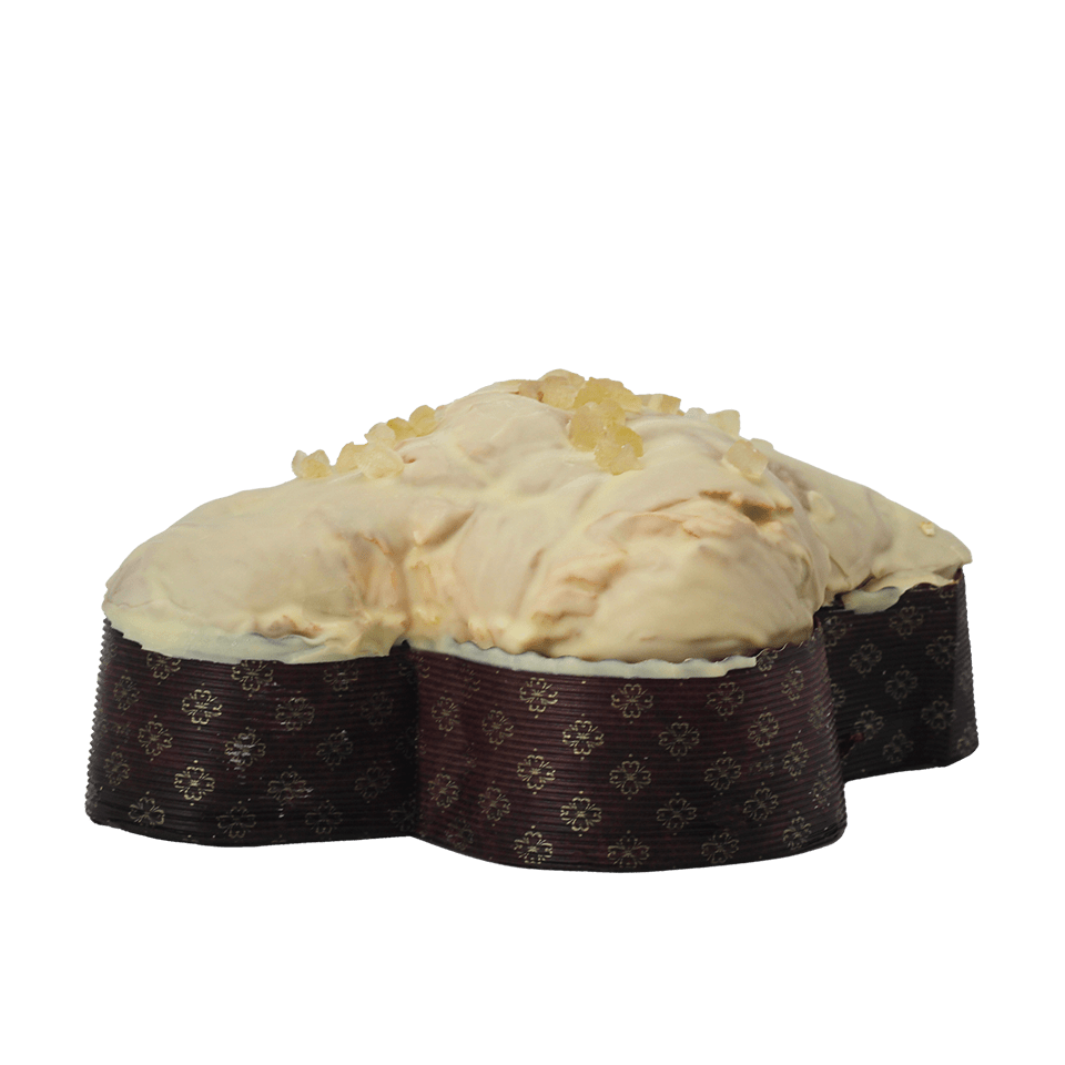 Farina 00 di grano tenero , cioccolato al caramello 29% ( burro di cacao ,zucchero, LATTE intero in polvere , LATTE scremato in polvere, siero di LATTE, emulsionante: lecitina di SOIA , aroma naturale di vaniglia ) , Burro , tuorli d’uova fresche pastorizzate, zucchero , lievito madre , miele d’acacia , pasta d’arancia , sale , acqua, vaniglia di bourbon del Madagascar in baccelli , Glassa: Cioccolato al caramello , granella di caramello salato.